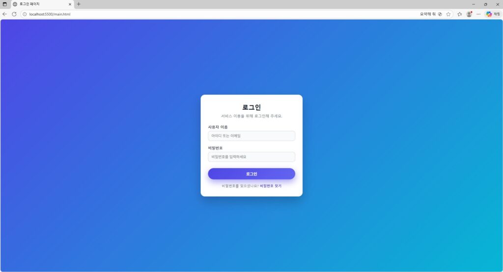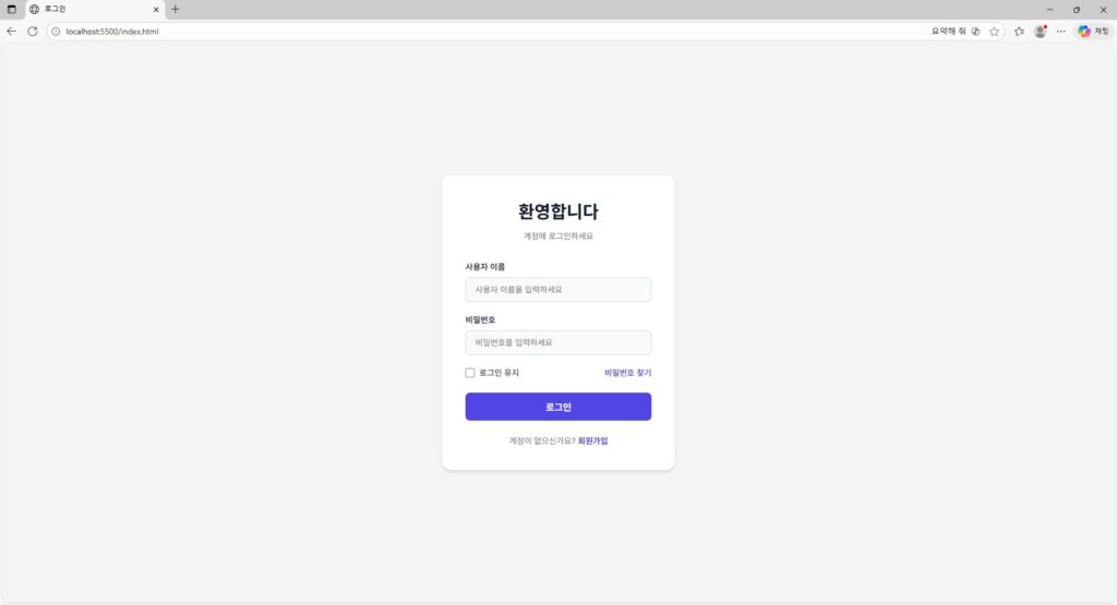 로그인 페이지에는 사용자 이름, 비밀번호 입력 창, 로그인 버튼이 있어야 해.