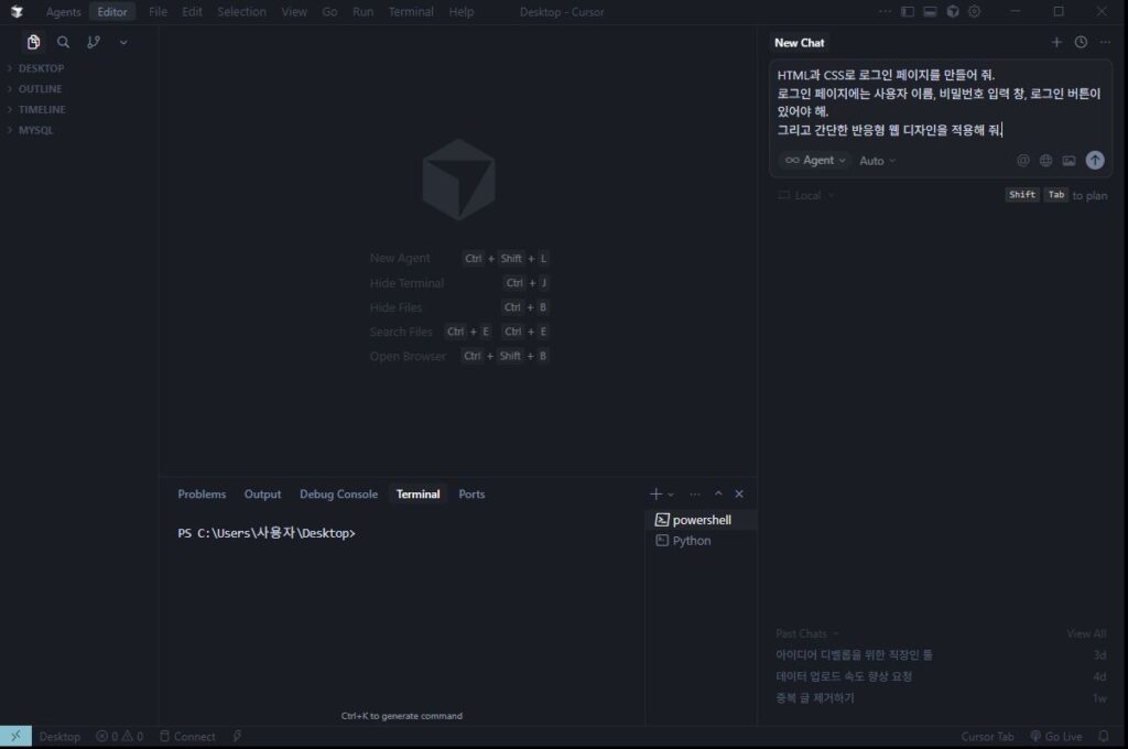 이번 실습에서는 HTML과 CSS를 활용한 로그인 페이지를 AI를 활용해서 만들어 보려 합니다.