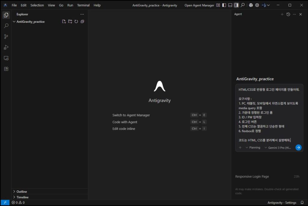 ✔ “디자인·부업·랜딩페이지 → AntiGravity”