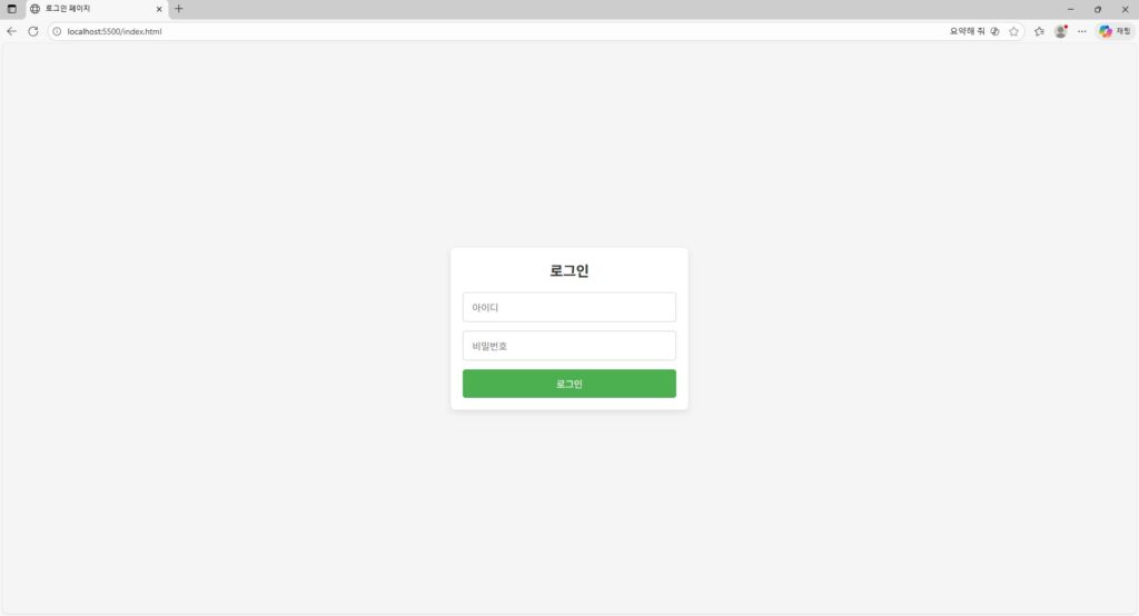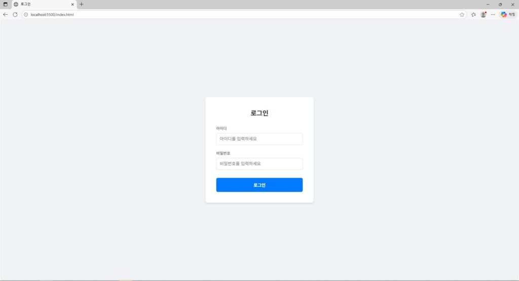.login-form에 흰색 배경과 그림자(box-shadow)를 주어 깔끔한 카드 UI를 만들었습니다.- 입력창과 버튼에 적절한 패딩과 둥근 모서리(